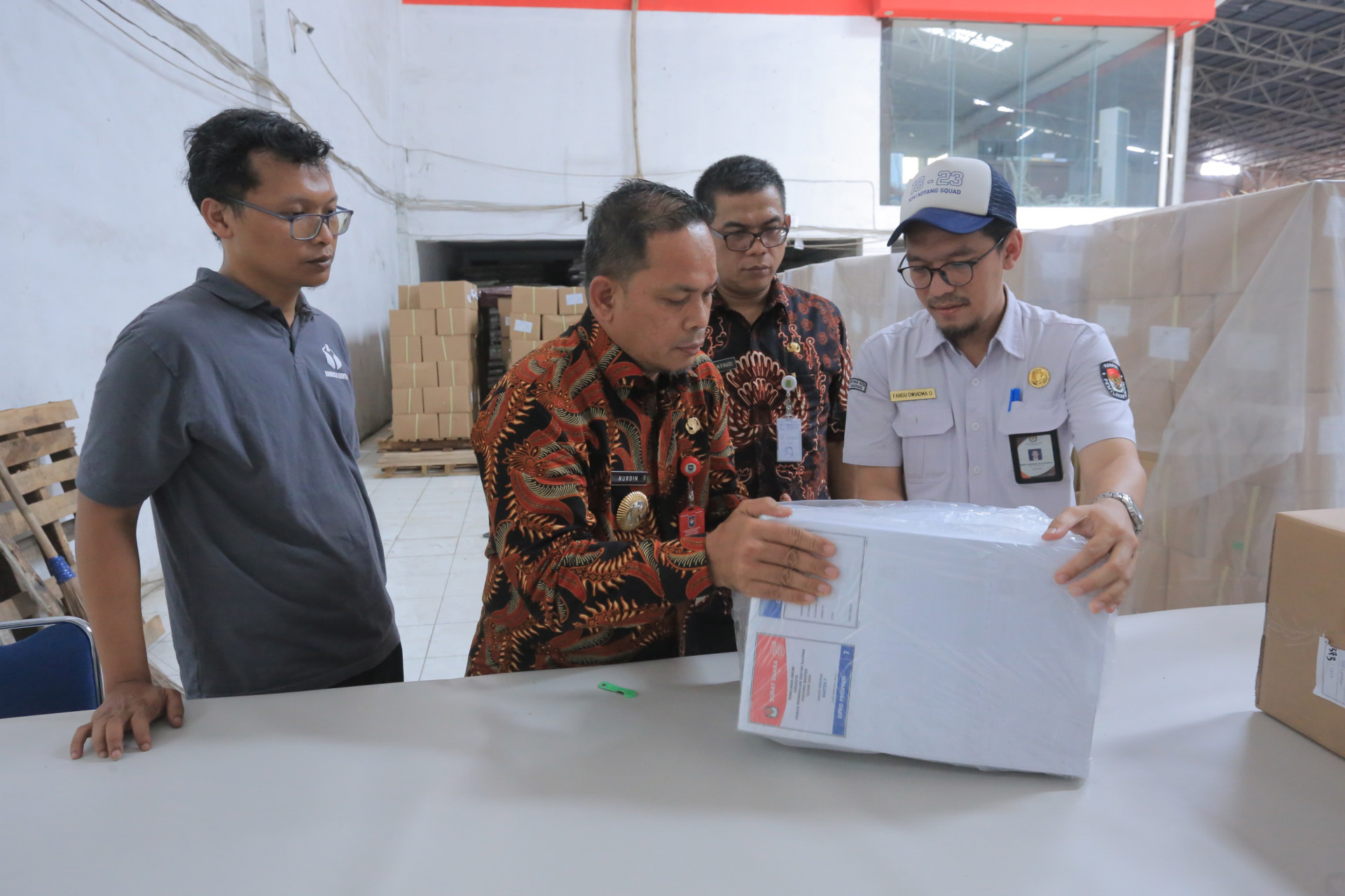 “Saat ini, sudah ditahap penyortiran dan pelipatan dan tentunya kita ingin memastikan agar tidak ada surat suara dan juga kotak suara yang rusak dan cacat saat didistribusikan ke TPS-TPS,” ujar Pj Wali Kota.