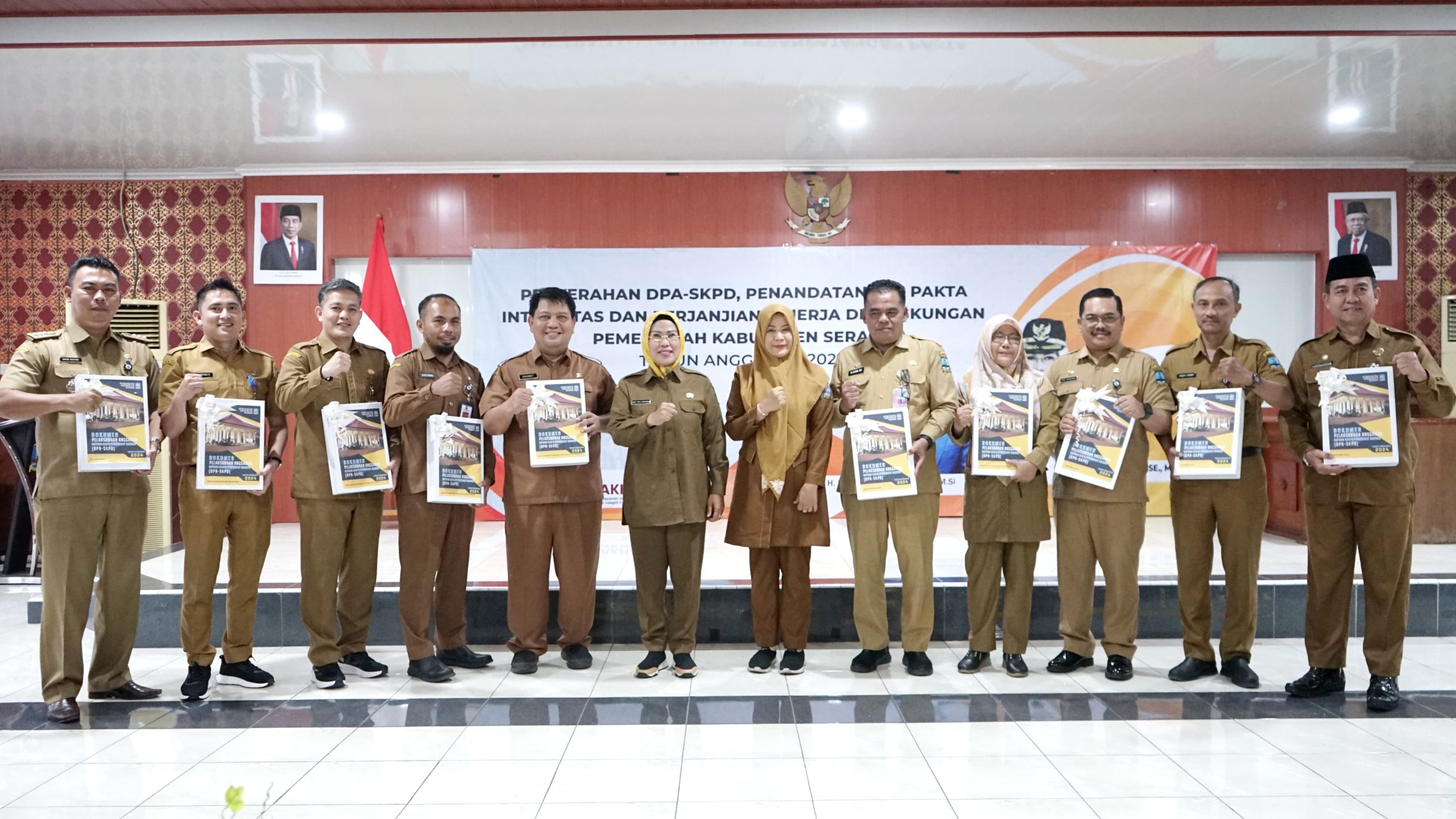 Suaraaspirasi.id – Bupati Serang Ratu Tatu Chasanah secara resmi menyerahkan Daftar Pelaksanaan Anggaran-Satuan Kerja Perangkat Daerah (DPA-SKPD) Tahun Anggaran 2024 di Aula Tb Suwandi Setda Kabupaten Serang, Senin (15/1/2024). Selain itu, Bupati juga meminta para kepala SKPD hingga camat menandatangani Pakta Integritas dan Perjanjian Kinerja untuk meningkatkan efektivitas pelaksanaan program.
