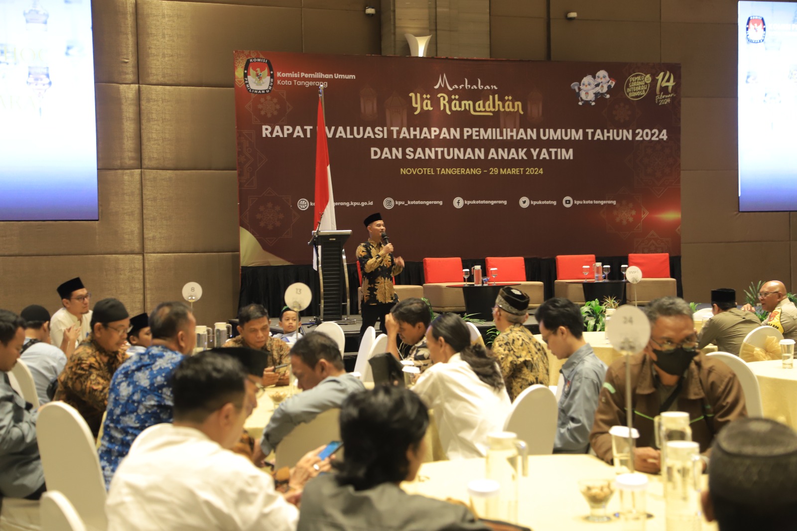 Acara dihadiri Panitia Pemilihan Kecamatan (PPK), Panitia Pemungutan Suara (PPS) dari 13 kecamatan di Kota Tangerang yang dilaksanakan di Ballroom Novotel Hotel Kota Tangerang, Jumat (29/3/2024).