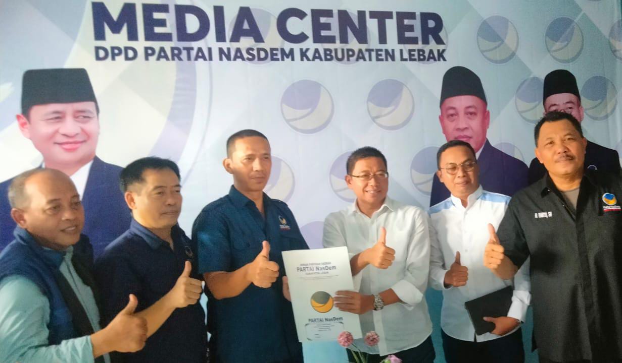 Dede Supriadi mendatangi Media Center Penjaringan Bakal Calon Bupati (Bacabup) dan Bakal Calon Wakil Bupati (Bacawabup) kabupaten Lebak Periode tahun 2024 – 2029 yang bertempat di Sekretariat DPD Partai Nasional Demokrat (NASDEM) pada, Rabu (1/5/2024).