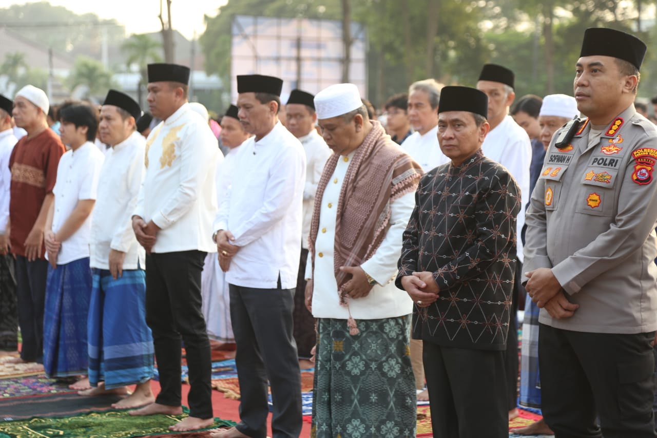 Penjabat (Pj) Wali Kota Serang Yedi Rahmat bersama Sekda Kota Serang, Kapolresta Serang Kota, Dandim 06/02 serang serta unsur Pimpinan Pemerintah Kota Serang juga turut melaksanakan Shalat Idul Adha 1445 H di lapangan alun-alun barat Kota Serang.