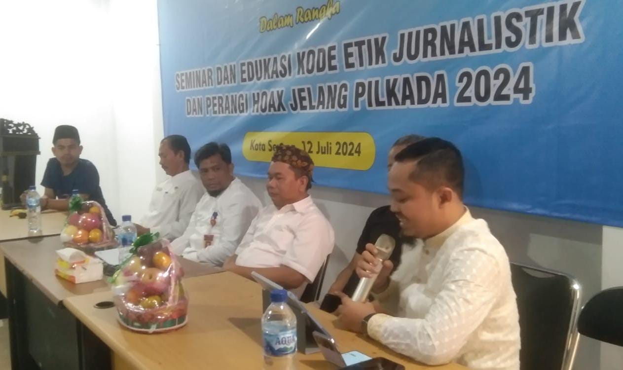 Hal itu mengemuka dalam Seminar dan Edukasi Kode Etik Jurnalis dan Perangi Hoax Jelang Pilkada 2024 kerja sama Biro Administrasi Pimpinan Setda Provinsi Banten dan Media Online Indonesia (MOI) DPW Provinsi Banten. Kegiatan yang dihadiri oleh perwakilan MOI dari delapan Kabupaten/Kota se-Provinsi Banten itu dilaksanakan di Gedung KNPI Provinsi Banten, KP3B Curug, Kota Serang, Jumat (12/7/2024).