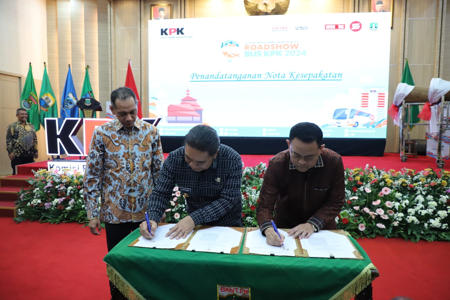 Disaksikan oleh Pimpinan Komisi Pemberantasan Korupsi Republik Indonesia (KPK), Nurul Ghufron, penandatanganan dilakukan oleh Sudaryanto dan Penjabat Gubernur Banten, Al Muktabar saat rangkaian kegiatan Roadshow Bus KPK 2024, Rapat Koordinasi Kepala Daerah se-Banten yang berlangsung di Pendopo Gubernur Banten.