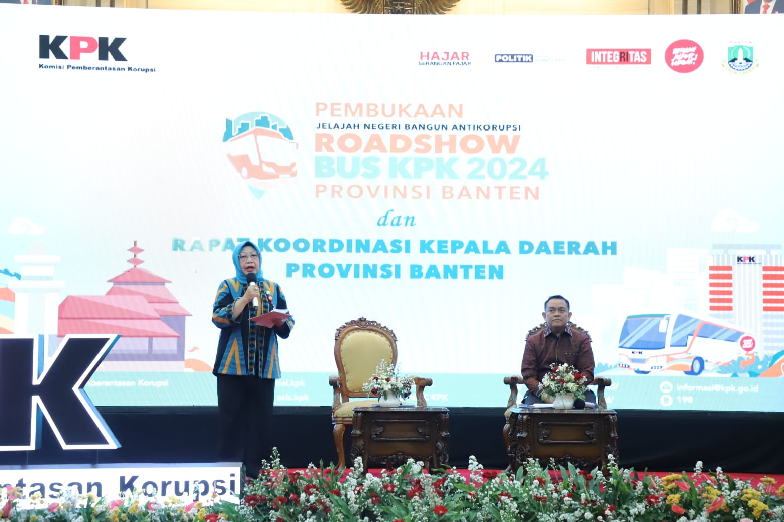 Hal tersebut disampaikan oleh Sudaryanto saat kegiatan Sosialisasi Sertipikat Hak atas Tanah Elektronik bersama Pemerintah Provinsi Banten yang merupakan agenda kegiatan Roadshow Bus KPK 2024, Rapat Koordinasi Kepala Daerah se-Banten yang berlangsung di Pendopo Gubernur Banten, Kamis (5/9/2024). (Trg)
