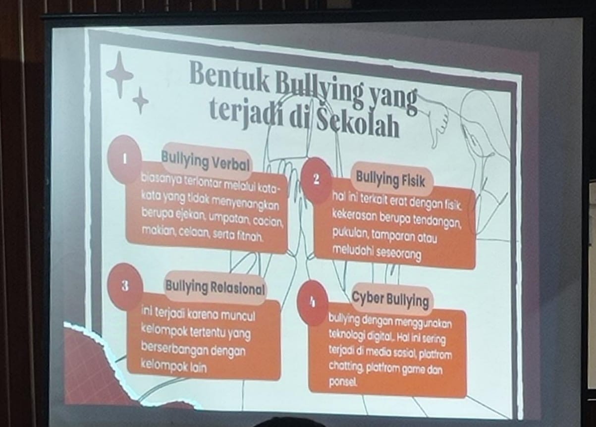 “Bullying adalah tindakan penggunaan kekuasaan untuk menyakiti seseorang atau sekelompok orang baik secara fisik, maupun psikologis sehingga korban merasa tertekan, trauma, dan tak berdaya. Perilaku bullying dapat terjadi di lingkungan sekolah yang dapat mengarah kepada suatu tindak kriminal dan menimbulkan trauma bagi pelajar. Oleh karena itu, pelajar perlu diberikan pemahaman dan konsekuensi hukum jika perbuatan kekerasan tersebut dilakukan,” ungkap Rangga Adekresna, SH.