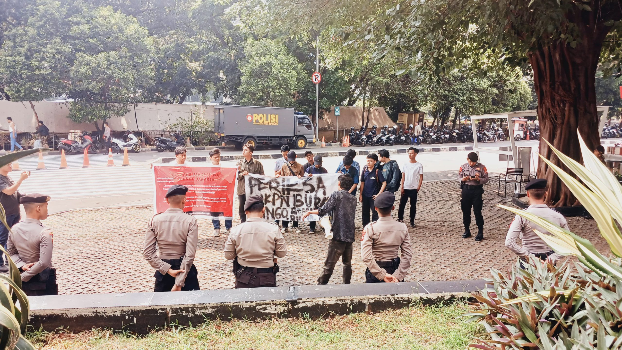 Aksi unjuk rasa digelar di gedung KPK RI dan kantor Kejaksaan Agung (Kejagung) RI pada Selasa (22/10/2024).