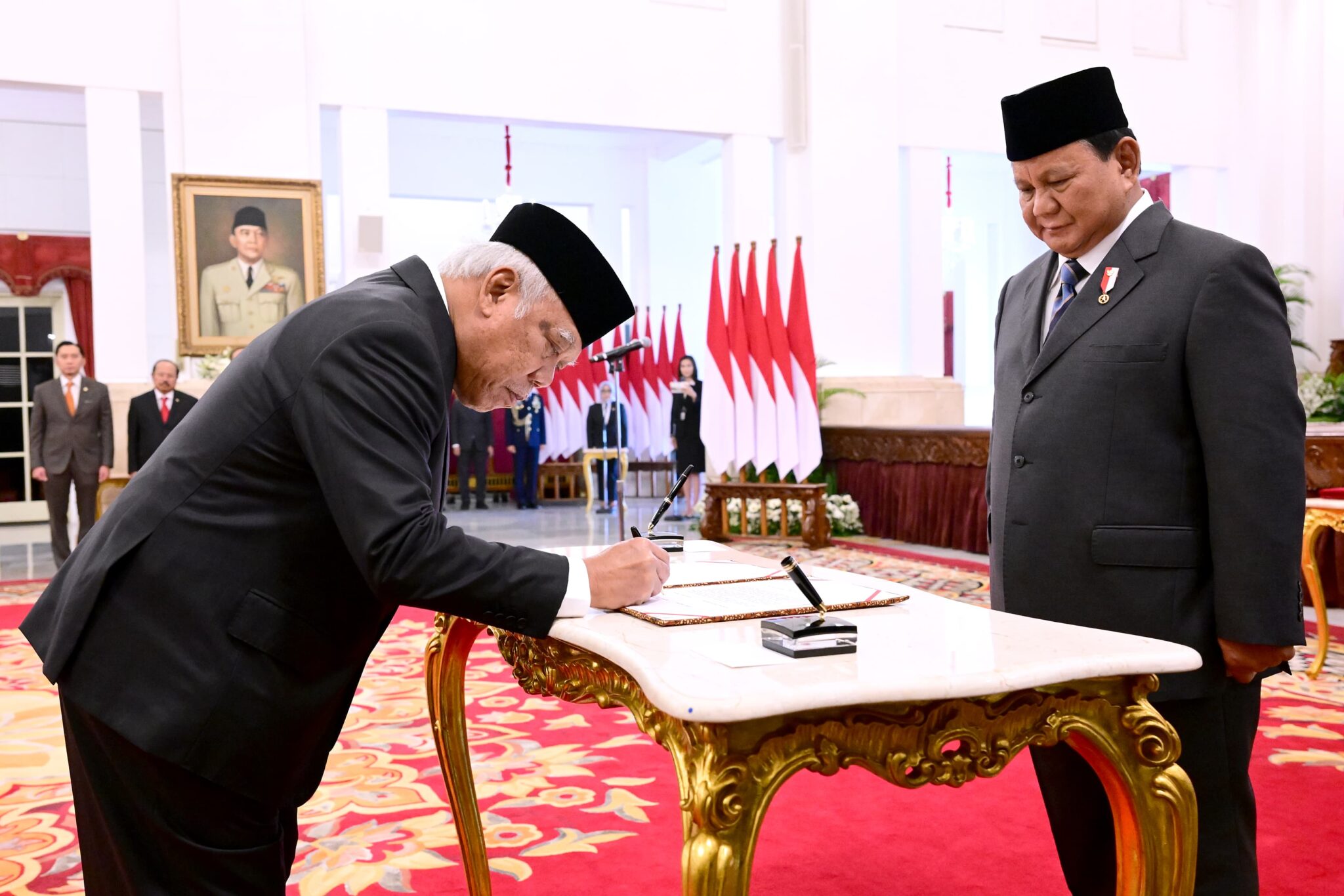 Pelaksanaan pelantikan ini diakhiri dengan pemberian ucapan selamat oleh Presiden Prabowo Subianto dan Wakil Presiden Gibran Rakabuming, serta diikuti oleh para tamu undangan yang hadir. (Red)