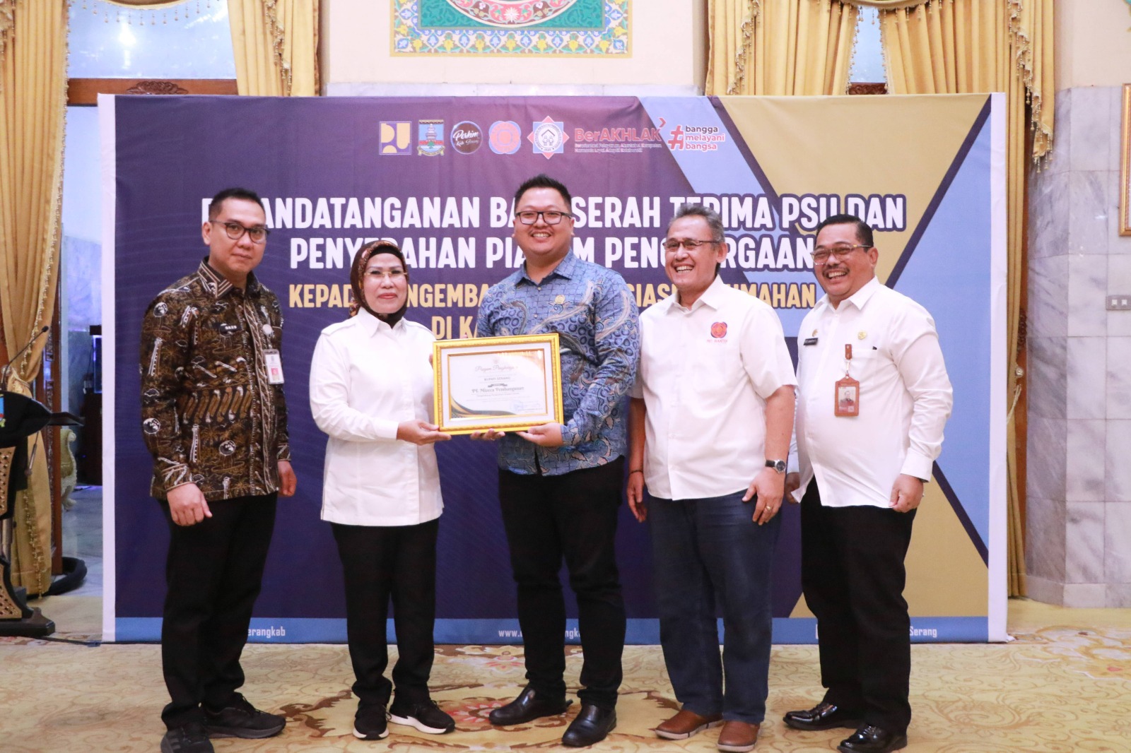 Serang, Krakataupos.com – Bupati Serang Ratu Tatu Chasanah melakukan penandatanganan BAST serah terima Prasarana Sarana Umum (PSU) perumahan bersama para pengembang di Pendopo Bupati pada Rabu, 6 November 2024. Selain itu, Bupati Serang juga memberikan penghargaan kepada pengembang, DPD Real Estat Indonesia (REI) Banten, dan DPD Asosiasi Pengembang Perumahan dan Permukiman Seluruh Indonesia (Apersi) Banten.
