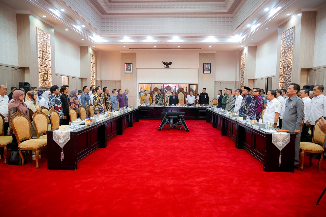 Kota Serang, Krakataupos.com – Penjabat (Pj) Gubernur Banten Al Muktabar bersama Bupati/Wali Kota, penyelenggara Pemilu serta jajaran Forkopimda menerima kunjungan kerja spesifik Komsi II DPR RI terkait persiapan dan kesiapan penyelenggara Pilkada Serentak 2024. Rombongan Komisi II diterima di pendopo Gubernur Banten, KP3B, Kota Serang, Rabu (13/11/2024).