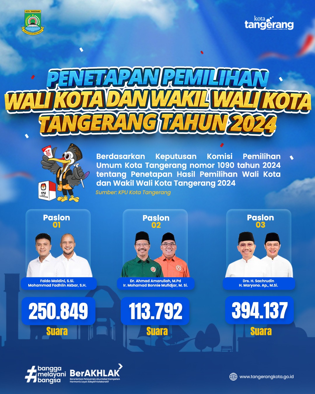 Ini Penetapan Hasil Pemilihan Wali Kota dan Wakil Wali Kota Tangerang Tahun 2024
