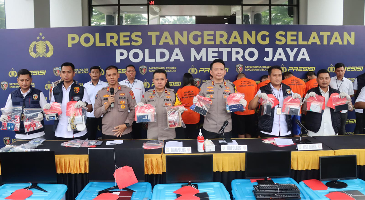 Tangsel, Krakatau Pos – Polres Tangerang Selatan (Tangsel) membongkar kasus judi online jaringan Kamboja di Ruko Puri Mansion Blok C5, Kembangan, Jakarta Barat. Tujuh pelaku di antaranya 5 pria dan 2 wanita yang bertugas menjalankan situs tersebut dibekuk.