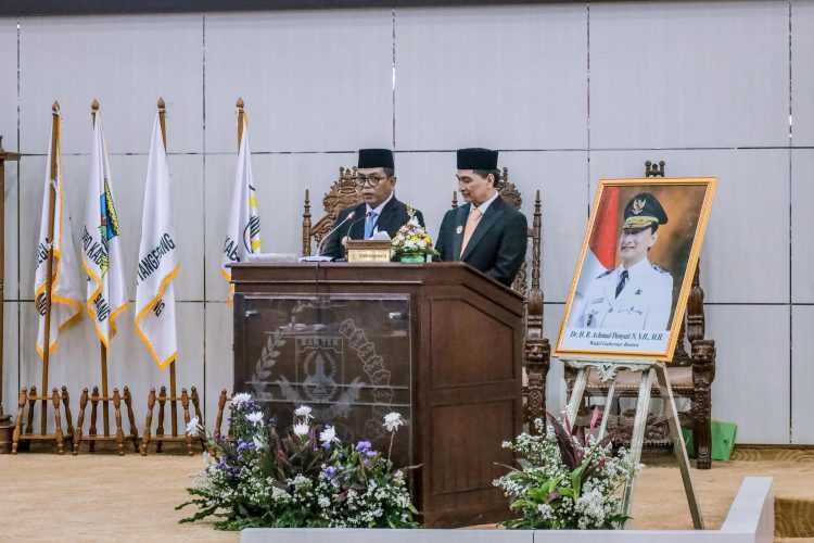 Ketua DPRD Banten H. Fahmi Hakim saat memimpin rapat paripurna tersebut menghaturkan selamat atas serah terima jabatan Gubernur Banten dan Wakil Gubernur Banten dari Pj. Gubernur Banten A. Damenta kepada Gubernur Banten Andra Soni serta Wakil Gubernur Dimyati Natakusumah Periode 2025-2030.