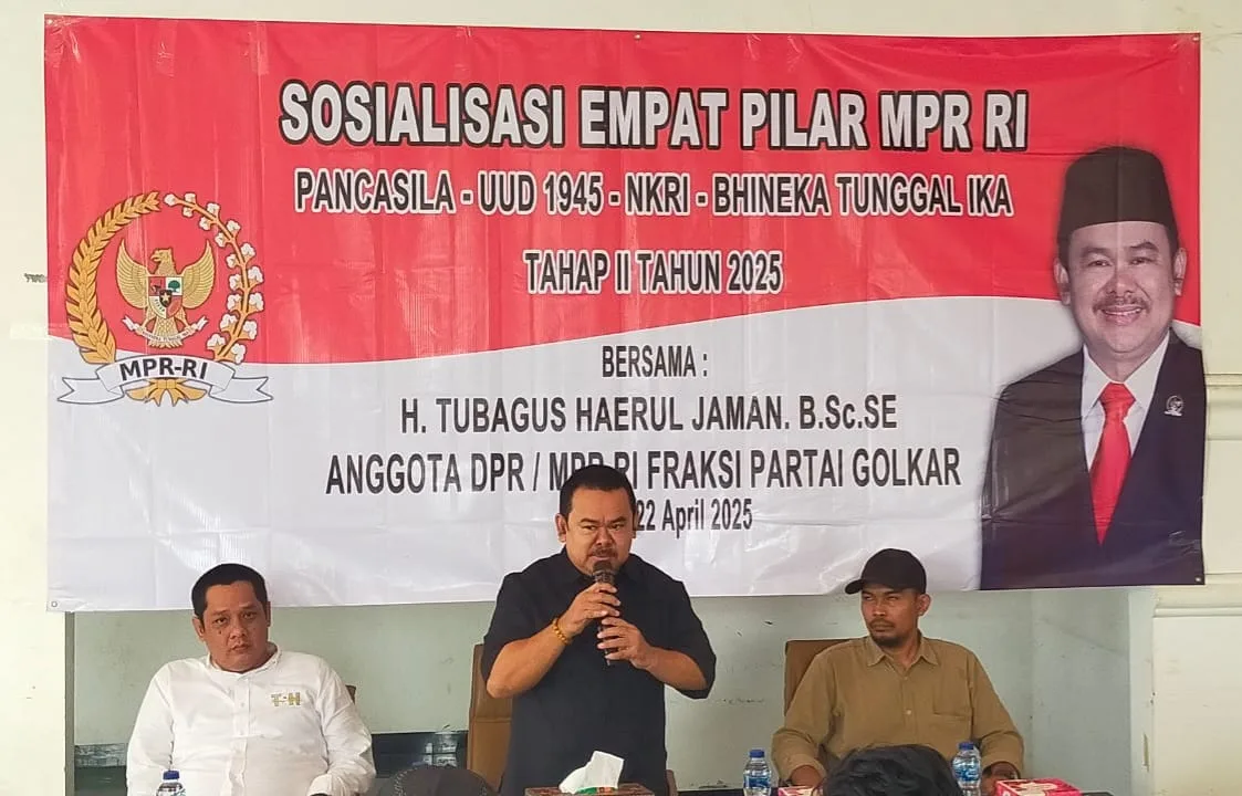 Serang, Krakataupos.com – H.Tubagus Haerul Jaman pada kesempatan kali ini mengatakan Empat Pilar kebangsaan Indonesia, yaitu Pancasila, UUD 1945, NKRI, dan Bhinneka Tunggal Ika, merupakan landasan yang kokoh dalam menjaga persatuan, kesatuan, dan keberagamaan indonesia. setiap masyarakat harus mampu menyikapi perkembangan dunia dengan baik sambil memupuk dan melaksanakan nilai-nilai kebangsaan, seperti gotong royong, musyawarah, tradisi dan kearifan lokal.