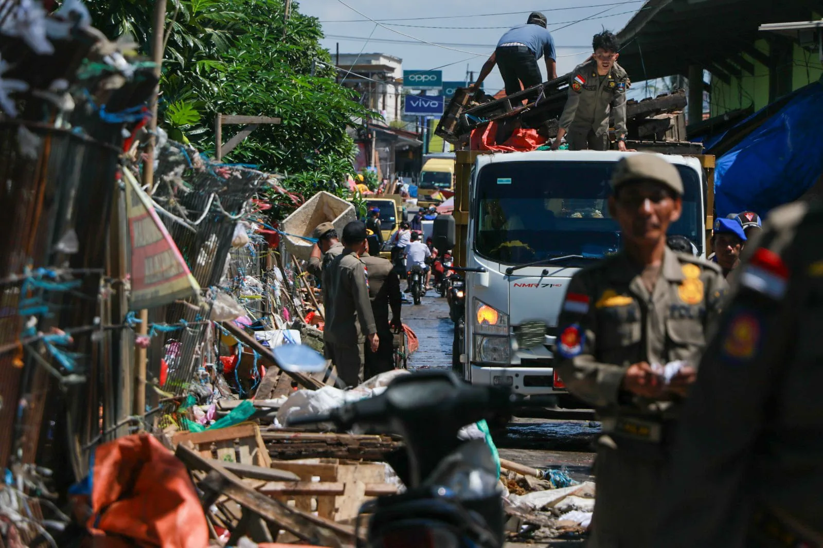 Satpol PP Kabupaten Serang Bongkar Puluhan Lapak PKL Pasar Ciherang Cikande