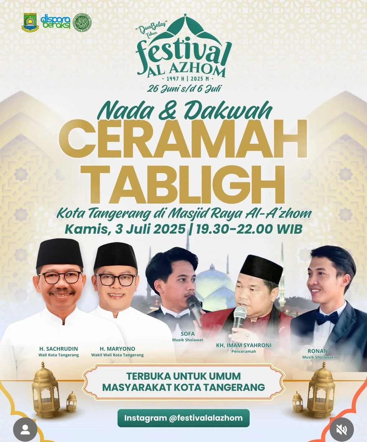 Jangan Lewatkan Ceramah Tablig & Nada Dakwah di Festival Al-A’zhom Kota Tangerang