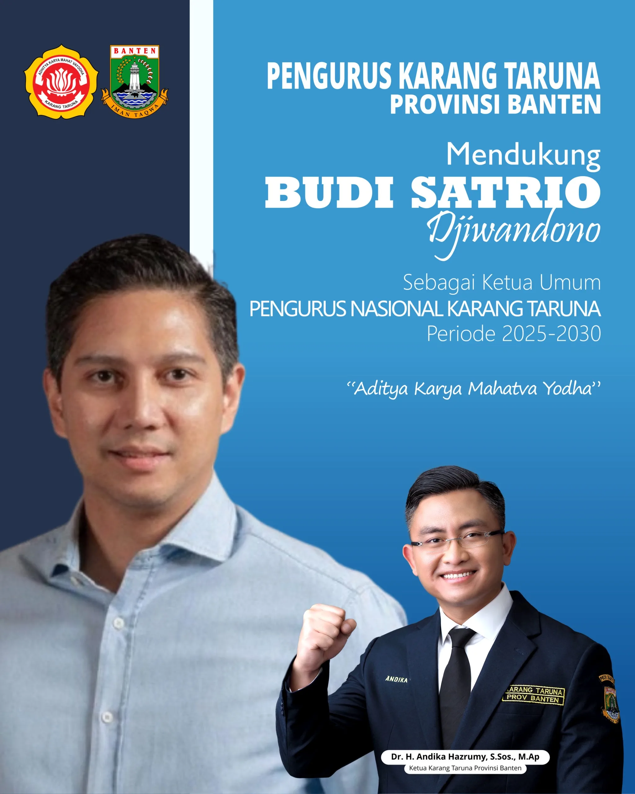 Jakarta — Karang Taruna (KT) Provinsi Banten menyatakan dukungan resminya kepada politisi muda Partai Gerindra, Budi Satrio Djiwandono, untuk memimpin Pengurus Nasional Karang Taruna (PNKT) periode 2025–2030. Dukungan tersebut menjadi bagian dari kesepakatan bersama dalam forum nasional yang dihadiri pengurus Karang Taruna dari seluruh provinsi di Indonesia.
