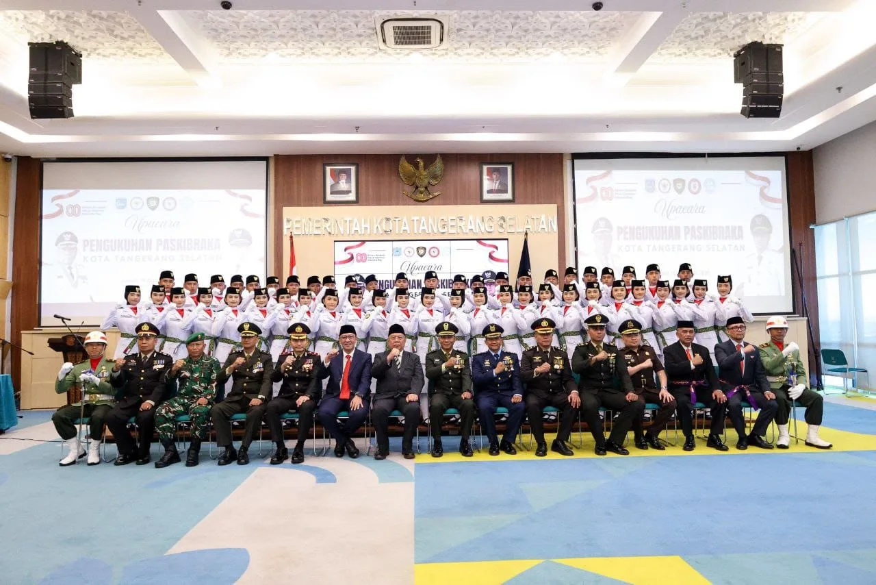 CIPUTAT – Wali Kota Benyamin Davnie mengukuhkan Pasukan Pengibar Bendera Pusaka (Paskibraka) Kota Tangerang Selatan tahun 2025. Acara pengukuhan Paskibraka berlasung di Aula Blandongan, Puspemkot Tangsel. Jumat (15/08/2025).