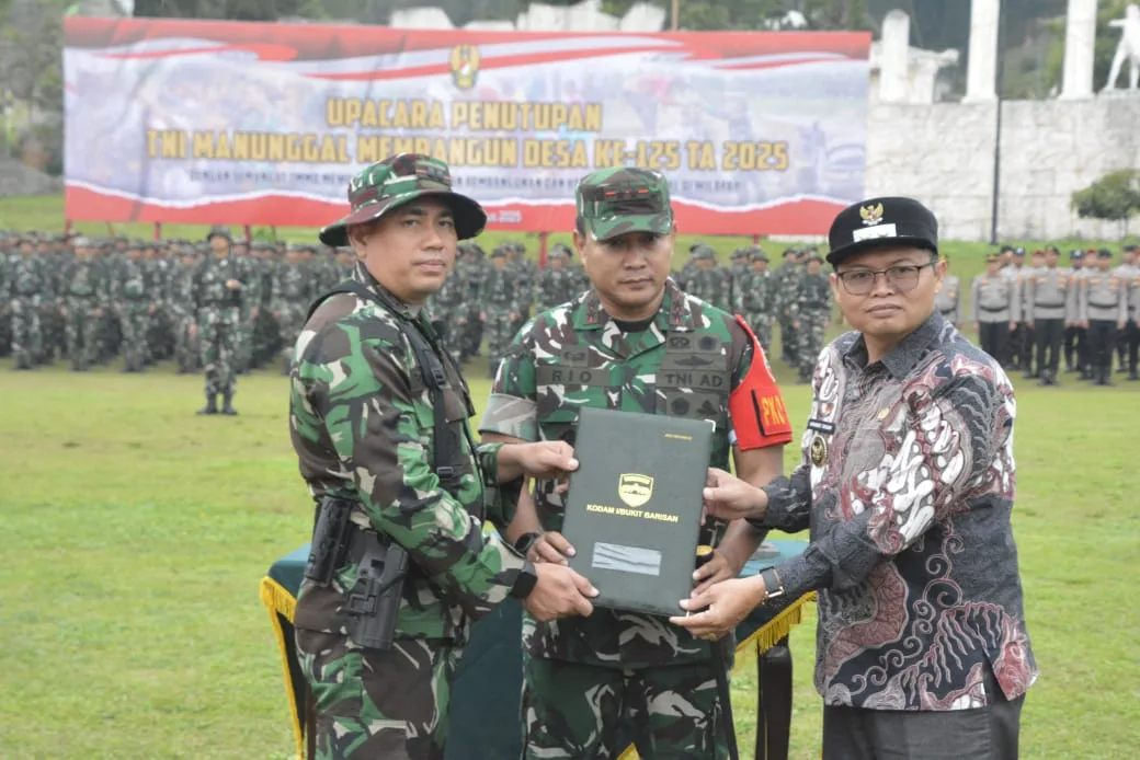 TANAH KARO, SUMUT – Pangdam I/BB Mayjen TNI Rio Firdianto resmi menutup pelaksanaan TNI Manunggal Membangun Desa (TMMD) ke-125 TA 2025 di Wilayah Kodim 0205/TK tepatnya di Desa Barusjahe Kecamatan Barusjahe Kabupaten Karo. Penutupan program tersebut berlangsung di Lapangan Mikky Holiday Resort Berastagi, Kamis 21/8/2025.