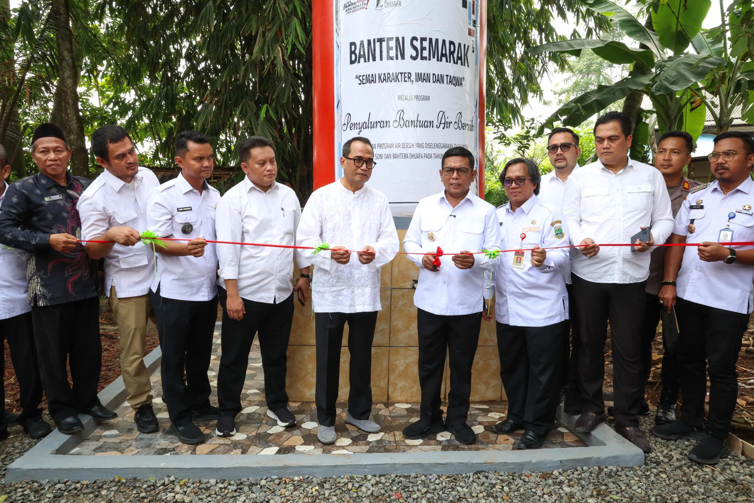 Program Pendistribusian Renovasi RTLH dan instalasi air bersih ditandai dengan gunting pita oleh Gubernur Banten Andra Soni di depan rumah hasil renovasi RTLH dan instalasi air bersih. Turut mendampingi Ketua Yayasan Bahtera Maju Indonesia Budi Karya Sumadi, anggota DPRD Provinsi Banten Wawan Suhada, pimpinan dan anggota DPRD Kabupaten Tangerang, Kepala Dinas Perumahan Rakyat dan Kawasan Permukiman Provinsi Banten M. Rachmat Rogianto, serta Ketua Badan Amil Zakat Nasional (Baznas) Provinsi Banten, Syibli Syarjaya. Usai gunting pita, Andra Soni melakukan peninjauan ke rumah Pepen, salah satu rumah hasil renovasi.