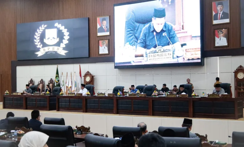 SERANG – Rapat Paripurna Pendapat Gubernur terhadap Penjelasan DPRD atas 2 (Dua) Raperda Usul DPRD Provinsi Banten, Selasa (14/10/2025).
