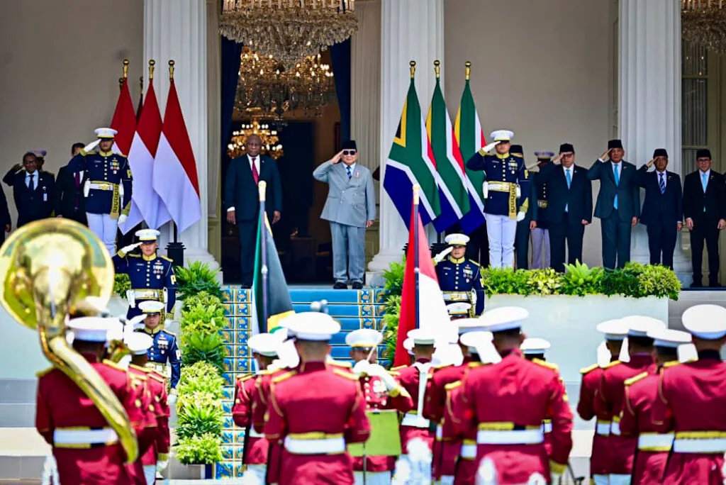 Jakarta, Krakataupos.com – Presiden Republik Indonesia Prabowo Subianto menyambut secara resmi kunjungan kenegaraan Presiden Republik Afrika Selatan, Matamela Cyril Ramaphosa di Istana Merdeka, Jakarta, pada Rabu, 22 Oktober 2025 dalam upacara kenegaraan penuh kehormatan. Upacara tersebut menandai dimulainya kunjungan kenegaraan Presiden Ramaphosa ke Indonesia.