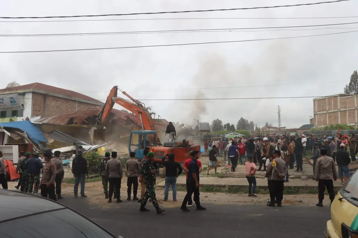Usai situasi kondusif, kegiatan pembersihan lahan dan bangunan di objek pertama dilanjutkan dengan menggunakan dua unit alat berat serta tenaga kerja sebanyak 30 orang. Proses kemudian berlanjut ke objek kedua di Jalan Veteran Gang Kalihara Ujung, yang berlangsung hingga sore hari.