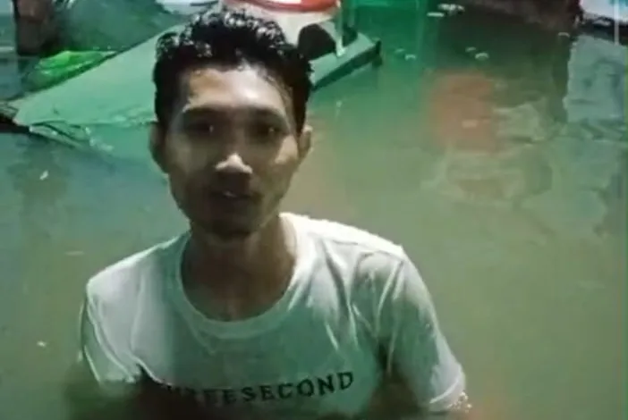 Air banjir masuk hingga ke dalam rumah warga dengan ketinggian bervariasi. Di beberapa titik, terutama RT 01 dan RT 02, ketinggian air mencapai dada orang dewasa.