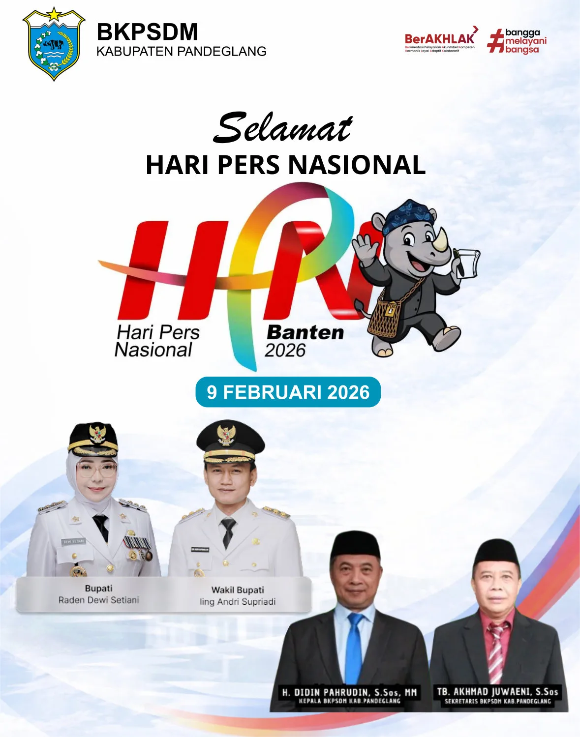 BKPSDM Kabupaten Pandeglang mengucapkan selamat memperingati Hari Pers Nasional 2026. “Pers Sehat, Ekonomi Berdaulat, Bangsa Kuat”.