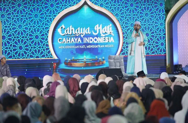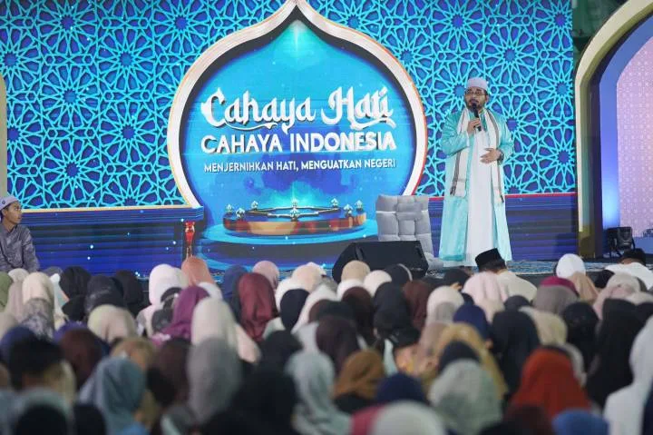 Tangerang,Krakataupos.com – Ribuan jemaah kembali memadati Masjid Raya Al-A’zhom, Kota Tangerang, kali ini dalam kegiatan Cahaya Hati Cahaya Indonesia bertema “Menguatkan Hati, Menguatkan Negeri” yang digelar oleh salah satu stasiun tv nasional, Minggu malam (15/2/2026). Kegiatan ini menjadi bagian dari persiapan spiritual masyarakat dalam menyambut datangnya bulan suci Ramadan.