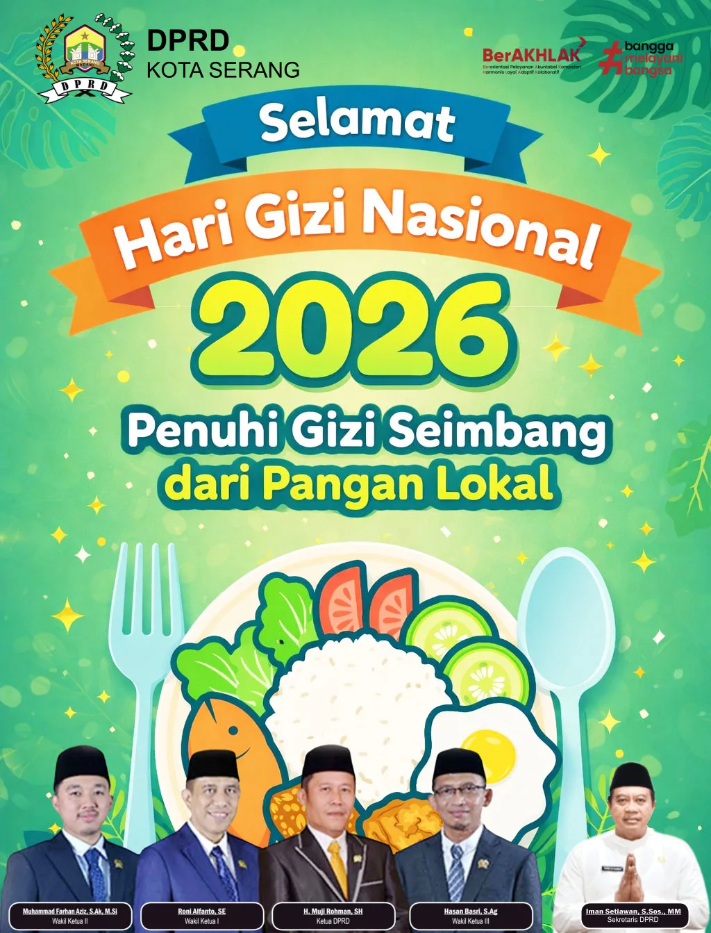 Dprd Kota Serang mengucapkan selamat memperingati Hari Gizi Nasional (HGN) ke-66 pada 25 Januari 2026. “Penuhi Gizi Seimbang dari Pangan Lokal, Sehat Dimulai dari Piringku”