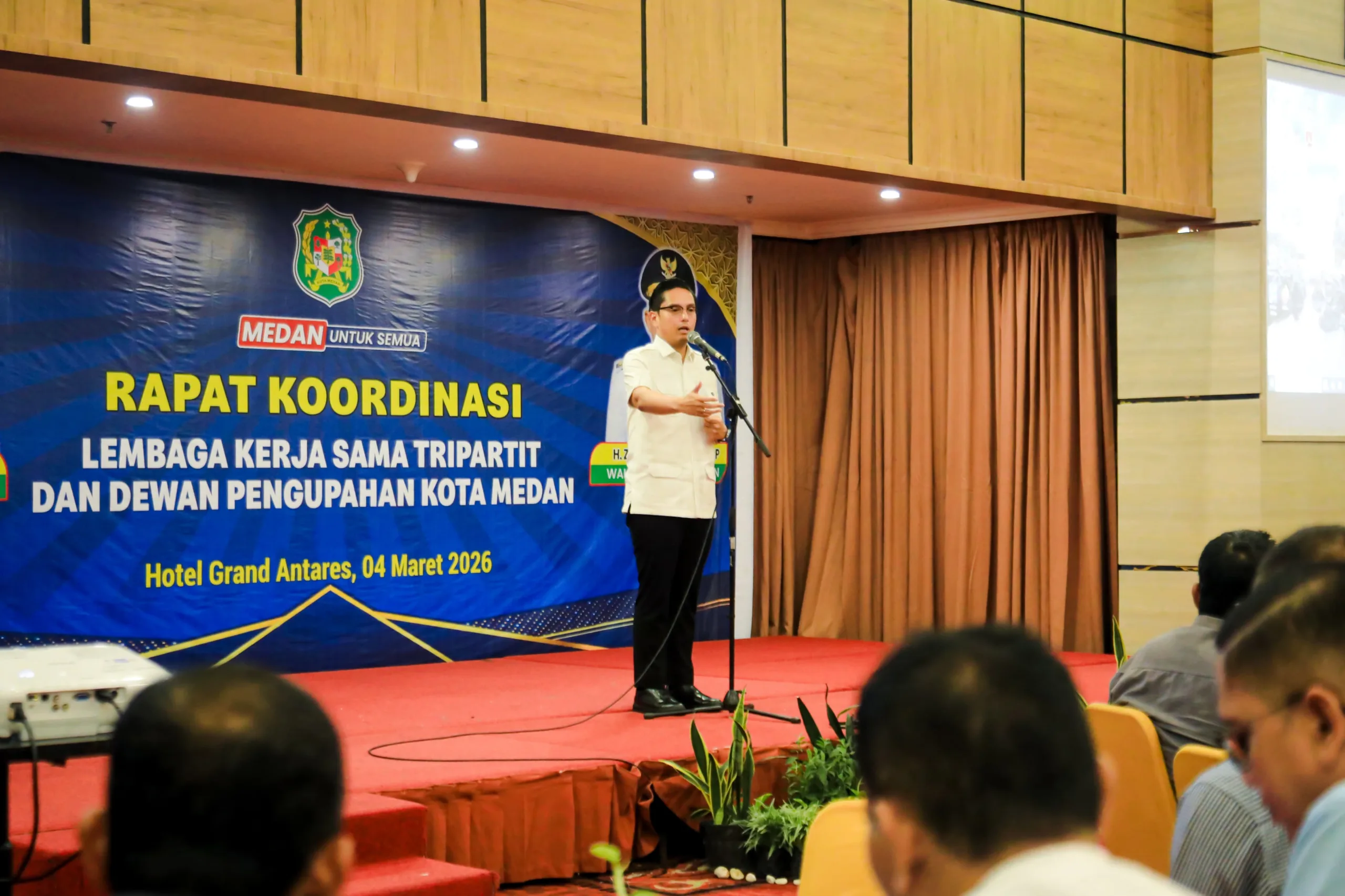 Hal tersebut disampaikan Rico Waas saat membuka Rapat Koordinasi anggota Lembaga Kerja Sama (LKS) Tripartit dan Dewan Pengupahan Kota Medan di hotel Grand Antares, Medan Kota, Rabu (4/3/26).