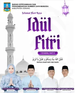 BKPSDM Kabupaten Serang mengucapkan Selamat Hari Raya Idul Fitri 1447 H/2026 M. Taqaballahu Minna Wa Minkum “Mohon Maaf Lahir & Batin”