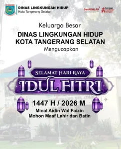 Keluarga Besar Dinas Lingkungan Hidup Kota Tangerang Selatan mengucapkan Selamat Hari Raya Idul Fitri 1447 H/2026 M. Taqaballahu Minna Wa Minkum “Mohon Maaf Lahir & Batin”