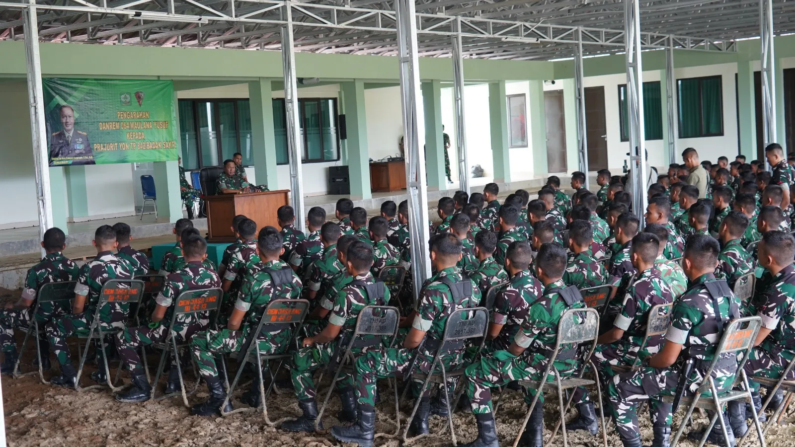 Pandeglang,Karakataupos.comDanrem 064/Maulana Yusuf Brigjen TNI Daru Cahyadi Soeprapto, S.Sos., M.M., memberikan pengarahan dan motivasi kepada ratusan prajurit Yonif TP 842/Badak Sakti di wilayah Cimanggu, Kabupaten Pandeglang, Kamis (26/3/2026).