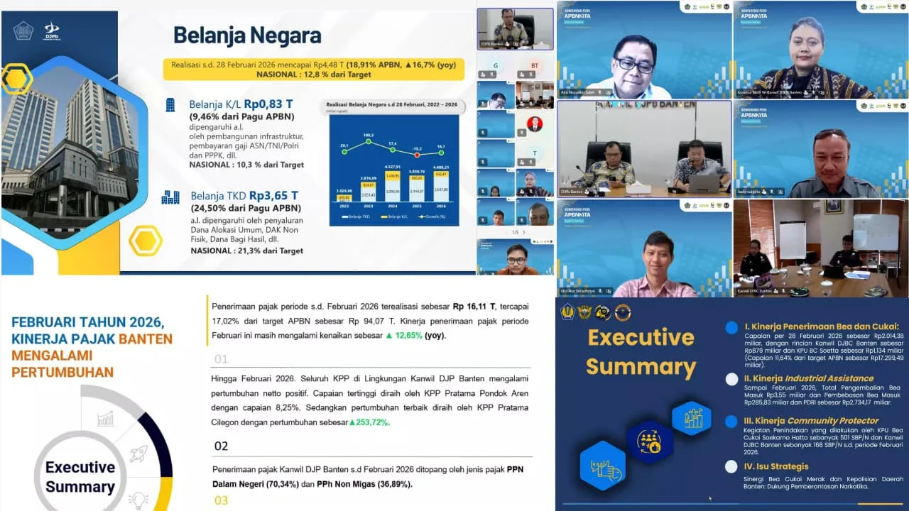 Di sisi lain, Kepala Kanwil DJP Banten Aim Nursalim Saleh mengungkapkan bahwa penerimaan pajak di Banten hingga Februari 2026 mencapai Rp10,76 triliun atau 11,44 persen dari target tahunan, dengan pertumbuhan 12,63 persen dibandingkan periode yang sama tahun sebelumnya.