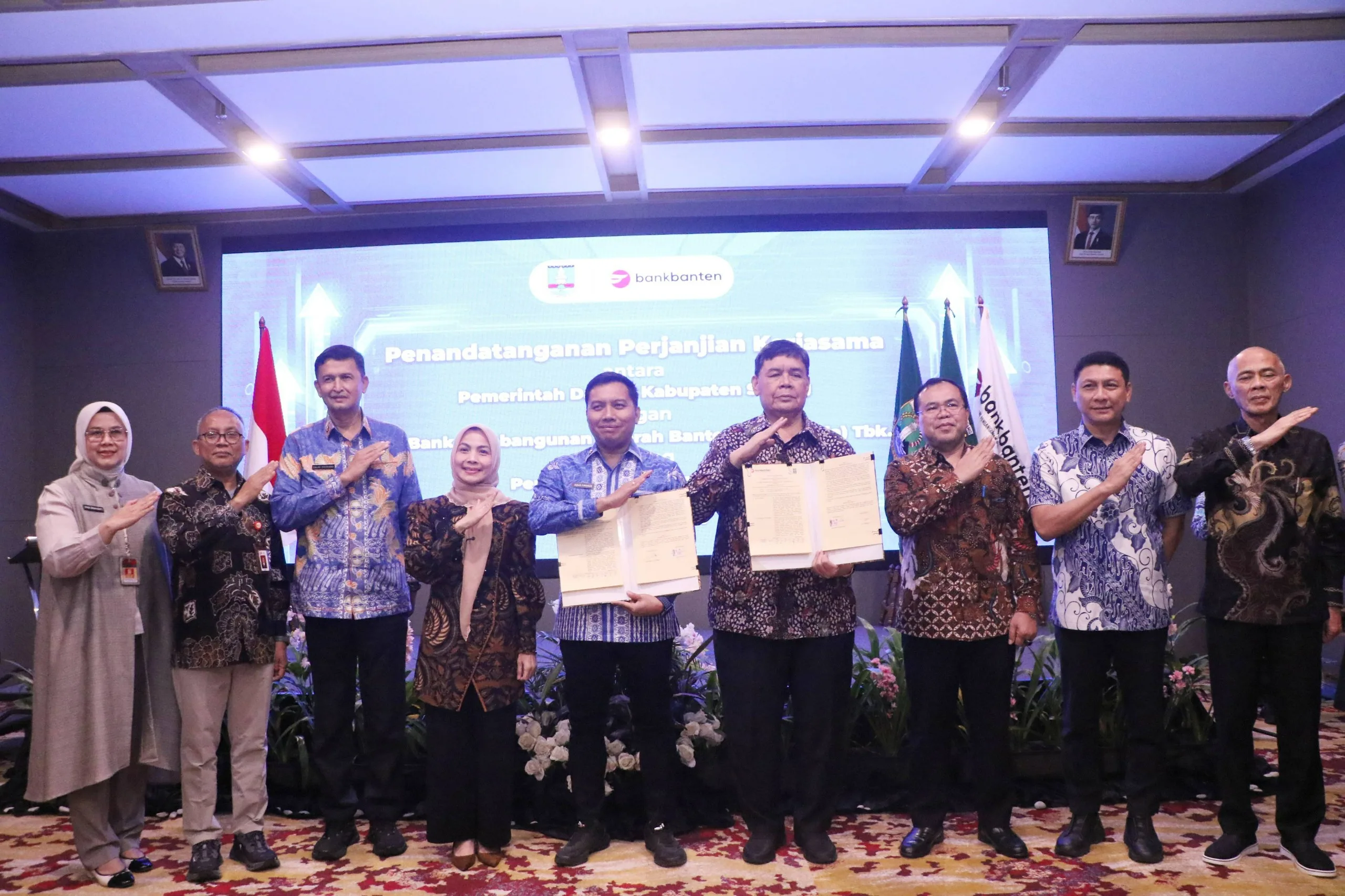 Penandatanganan dilakukan oleh Pelaksana Tugas (Plt) Kepala Badan Pengelolaan Keuangan dan Aset Daerah (BPKAD) Kabupaten Serang, Agus Firdaus dan Direktur Utama Bank Banten, Muhammad Bhustami disaksikan oleh Bupati Serang Ratu Rachmatuzakiyah, Kepala Kantor Otoritas Jasa Keuangan (OJK) Provinsi Banten, Adi Dharma, Sekda Kabupaten Serang Zaldi Dhuhana, Sekda Banten Deden Apriandi Hartawan, dan jajaran Komisaris dan Direkur Bank Banten di Aston Hotel Serang pada Kamis, 9 April 2026.