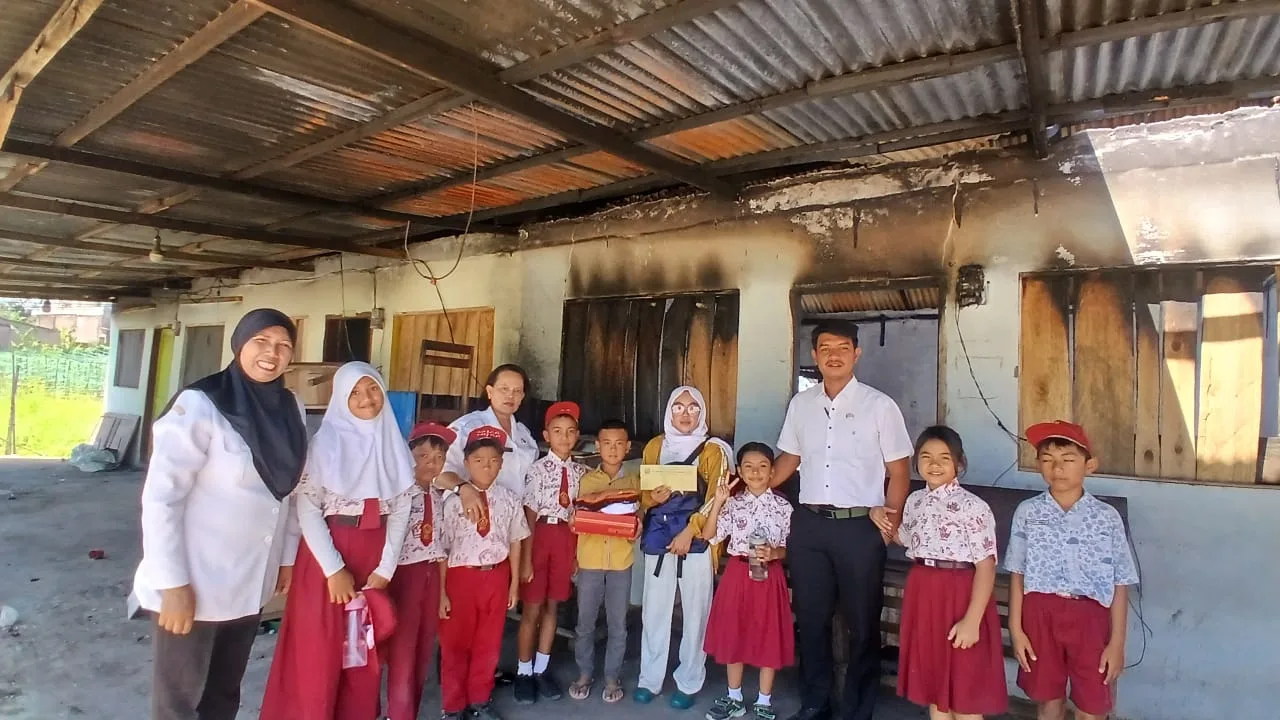 Kepala Sekolah SDN 040487 Tiga Nderket, Guru Dan Siswa Kunjungi Rumah Salah Satu Siswanya Yang Kebakaran”