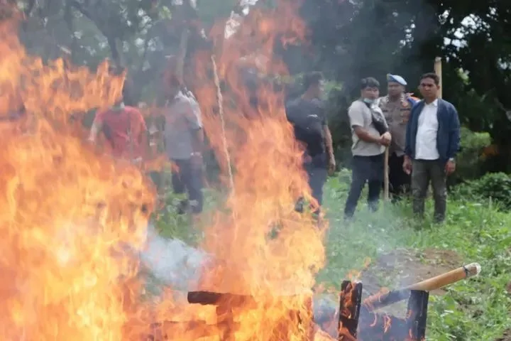 Respon Cepat Polres Karo! Barak Narkoba dan Judi di Perladangan Sukatendel Dibongkar Dan Di Bakar “