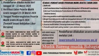 Kota Serang, Suaraaspirasi.id – Pendaftaran mudik gratis yang diselenggarakan oleh Pemerintah Provinsi Banten melalui Dinas Perhubungan (Dishub) Provinsi Banten sudah diserbu…