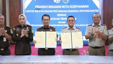 Serang, Suaraaspirasi.id – Kepala Kantor Wilayah Badan Pertanahan Nasional Provinsi Banten, Sudaryanto bersama Kepala Kejaksaan Tinggi Banten, Didik Farkhan Alisyahdi tanda…