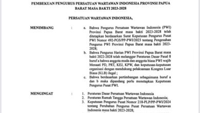 Plt Ketua PWI Papua Barat Nyatakan Pengurus PWI Papua Barat tidak Sah dan Telah Dibekukan