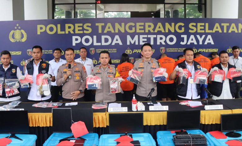 Tangsel, Krakatau Pos – Polres Tangerang Selatan (Tangsel) membongkar kasus judi online jaringan Kamboja di Ruko Puri Mansion Blok C5, Kembangan, Jakarta Barat. Tujuh pelaku di antaranya 5 pria dan 2 wanita yang bertugas menjalankan situs tersebut dibekuk.