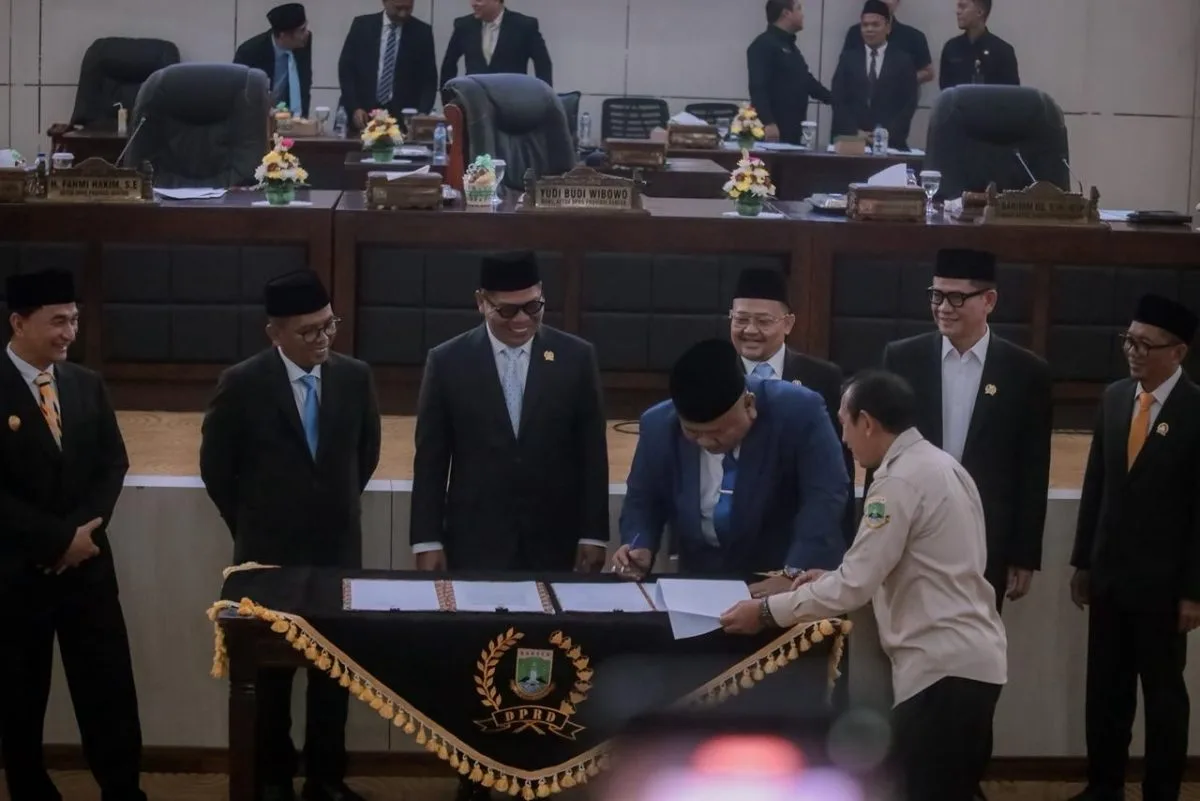 Rapat Paripurna kemudian ditutup dengan penandatanganan nota kesepakatan oleh Gubernur Banten Andra Soni dan Pimpinan DPRD Banten sebagai simbol komitmen bersama dalam mewujudkan tata kelola pemerintahan yang transparan, akuntabel, serta berpihak pada kepentingan masyarakat Banten.